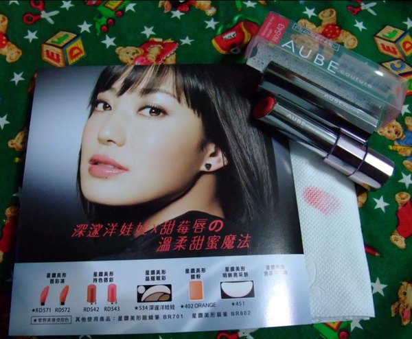 這次試用的"SOFINA星鑽美形持色唇彩",我所拿到的色號是RD543是2010秋妝新色,